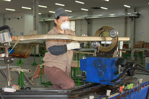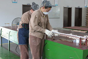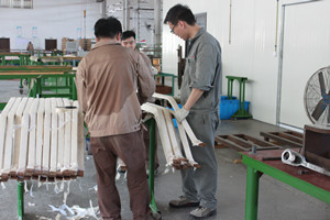 當我們走進線圈車間,撲面而來的是一股熱流,墻上掛著的溫度計已爬到了45度,而在那熱流沖擊的背后是一張張汗如雨下的面孔。在“焊”、“烘”、“熱壓”這一道道工序上,員工們頂著足以“蒸桑拿”的溫度,將熟練的動作與他們如同水洗一般的工作服交織在一起,但這些始終不影響線圈車間員工工作的熱情。汽發25MW、30MW、35MW機型的轉子線圈、定子線圈、槽套正在緊張的生產中,天氣炎熱,“燜”出汗了,用手擦把汗,渴了喝口水繼續工作,大家都在為了完成生產任務一直前進。車間的員工有家里小孩無人照看的,家里老人生病住院的,但為了能及時完成生產工作,他們經常放棄休息時間,放棄了多個與家人團聚的機會,在關鍵時刻,他們那強烈的責任感迸發出了強大的力量。