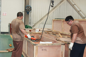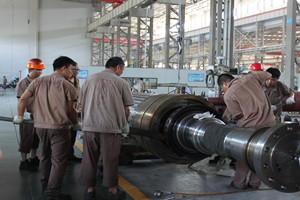 在金裝車間里,一個個忙碌的身影融入到搶進度,保生產的戰斗中,迎著高溫,默默地工作著。為了趕工期,加班加點已是家常便飯,為了確保安全作業,他們嚴格遵守各項安全操作規程。楊金山,在青田高崗項目的轉輪立式平衡動作試驗上為趕進度主動延長工作時間,還有在轉子中心體立式平衡試驗上一絲不茍、精心操作的王忠強,還有克服疲勞、連續工作完成5萬轉子嵌線的朱志君、陳捷、王銘明等等,都留下了他們辛勞的背影。走進車間的裝配區塊,我們感受到工作環境炎熱,發貨工期緊張,留給車間員工的時間非常的窘迫。生產必須圍繞市場轉,裝配作為公司產品產出的最后一道程序,車間進行了周密的安排,派出精干人員負責,各項工序都要井然有序,保質保量的完成。一線員工們冒著酷熱試車、油漆、裝箱,許多員工放棄了休息時間,加班加點地搶進度,正是因為有這些敢于和高溫進行戰斗的突擊隊員,才保證了公司正常的發貨需要。