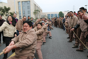 激動人心的拔河比賽開始了!當比賽的哨聲一響,只見雙方隊員緊緊抓牢手中的繩子,卯足了勁齊心協力往后拉,熱情的啦啦隊為參賽隊員高喊著“加油!加油!”,加油聲喧囂振耳,嘆息聲、歡笑聲此起彼伏,緊張時刻,隊員們咬緊牙關,使盡全力,奮勇拼搏?,F場激烈的比賽將整個活動推到了高潮,每一個參賽隊也都全力以赴,賽出了精神、賽出了風格!經過激烈角逐,我們在期待中終于見到了真英雄,線圈車間隊獲本次比賽第一名,金裝車間一隊獲第二名,金裝車間三隊獲第三名。