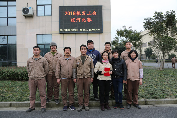 2018年12月18、19日,公司工會組織舉行了一場杭發傳統的男女混合“拔河”比賽,按照比賽規定,每隊派出男職工8名、女職工2名,來自公司各分工會12支參賽隊伍共120名員工參加了這次活動。比賽采用3局2勝淘汰制,并以抽簽的方式決定了對決順序。