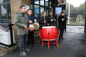 上午730分左右,公司大門口鑼鼓喧天,熱鬧非凡,一派喜慶祥和。公司黨政工團領導齊聚一起,早早等候,帶著真摯的祝福和問候,頂著細雨,在公司大門口迎接每一位職工,一聲聲“過年好”溫暖人心。