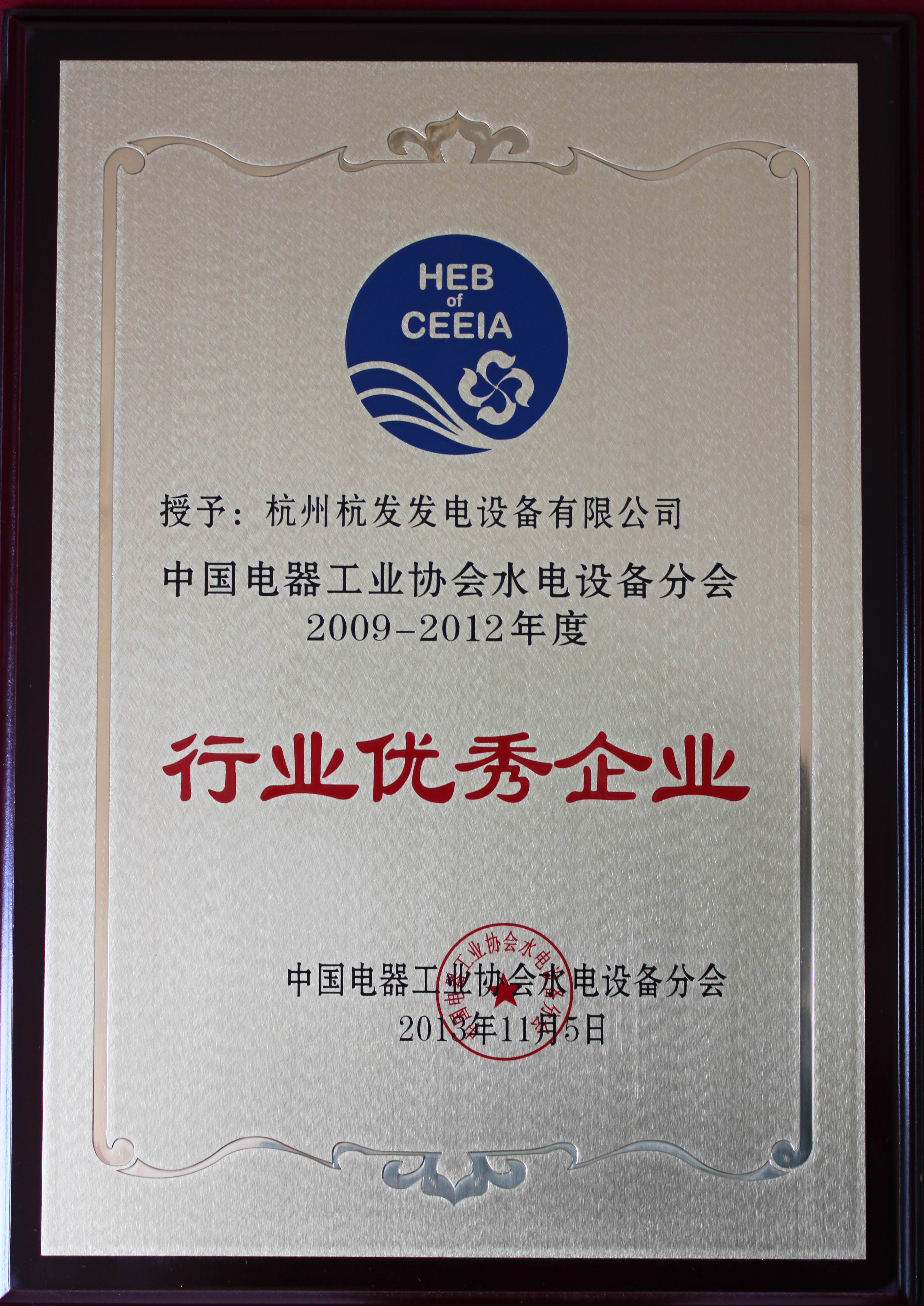 公司被中國電器工業協會水電設備分會授予“行業優秀企業”稱號