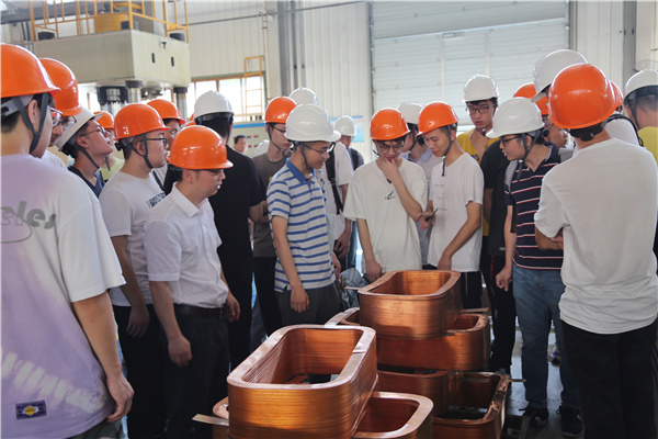 公司安全員對(duì)實(shí)習(xí)學(xué)生進(jìn)行了安全培訓(xùn)教育。由技術(shù)處人員帶隊(duì),浙大師生參觀了公司線(xiàn)圈車(chē)間與金裝車(chē)間的生產(chǎn)現(xiàn)場(chǎng)。公司技術(shù)人員結(jié)合現(xiàn)場(chǎng)情況,對(duì)相關(guān)生產(chǎn)設(shè)備、產(chǎn)品生產(chǎn)流程、工藝加工技術(shù)等進(jìn)行分析和講解,并耐心解答了學(xué)生們提出的問(wèn)題,促進(jìn)了學(xué)生理論與實(shí)踐的融會(huì)貫通。