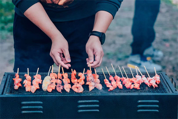 在露營時,所有人不自覺的親近大自然,呼吸著新鮮的空氣,放松疲憊的身心。沒有人能夠拒絕在此刻來一頓豐盛美味的燒烤大餐,我們團隊在一處芳草林蔭地,多人分工合作有的在一旁搭火堆將炭烤番薯,有的化身烤肉師傅在碳爐架前為食材上串抹油,伴隨著烤肉發出的滋滋聲,團隊的熱情一下就似火般燃了起來。